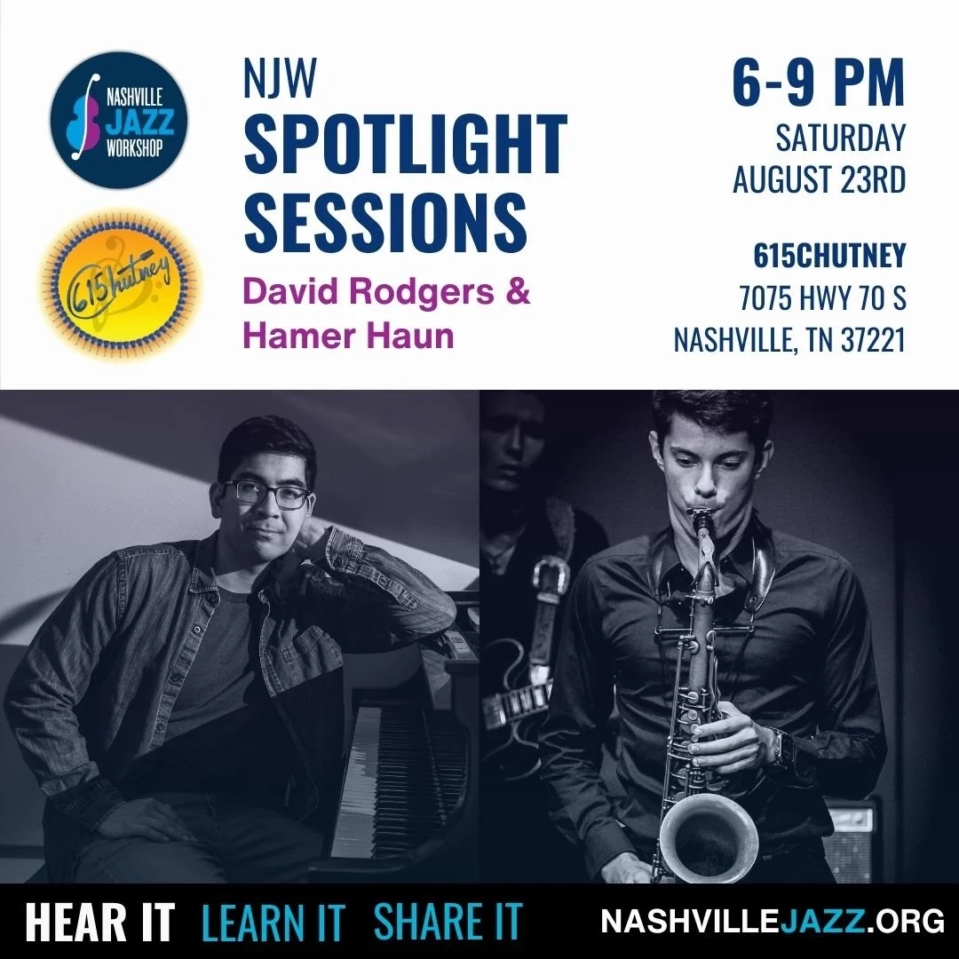 Join saxophonist Hamer Haun and pianist David Rodgers on August 23 from 6-9pm for the debut of NJW Spotlight Sessions, an evening of jazz and delicious cuisine at 615 chuTNey!
