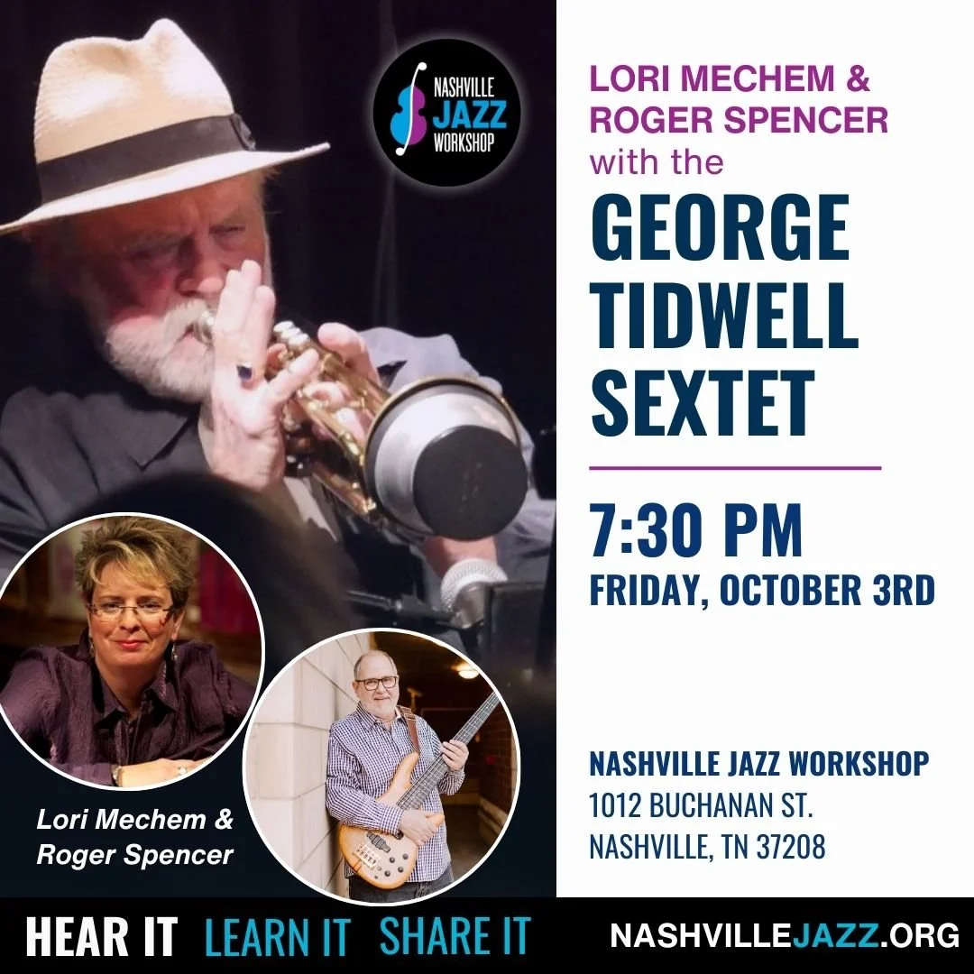 Join us at the Nashville Jazz Workshop for a truly special evening of music as Lori Mechem and Roger Spencer take the stage alongside the George Tidwell Sextet. This performance will bring together the timeless elegance of the American Songbook, classic jazz standards, and fresh original compositions - some written for past NJW concerts, others from celebrated albums featuring both Nashville and national jazz artists, and a few composed especially for this night.