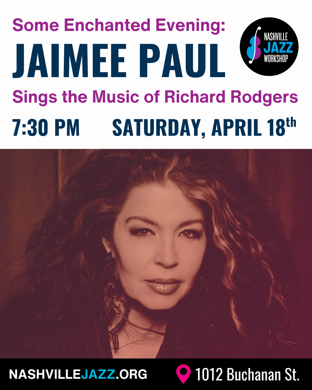 The Nashville Jazz Workshop welcomes Nashville vocalist Jaimee Paul for a special evening celebrating the timeless songs of legendary composer Richard Rodgers.