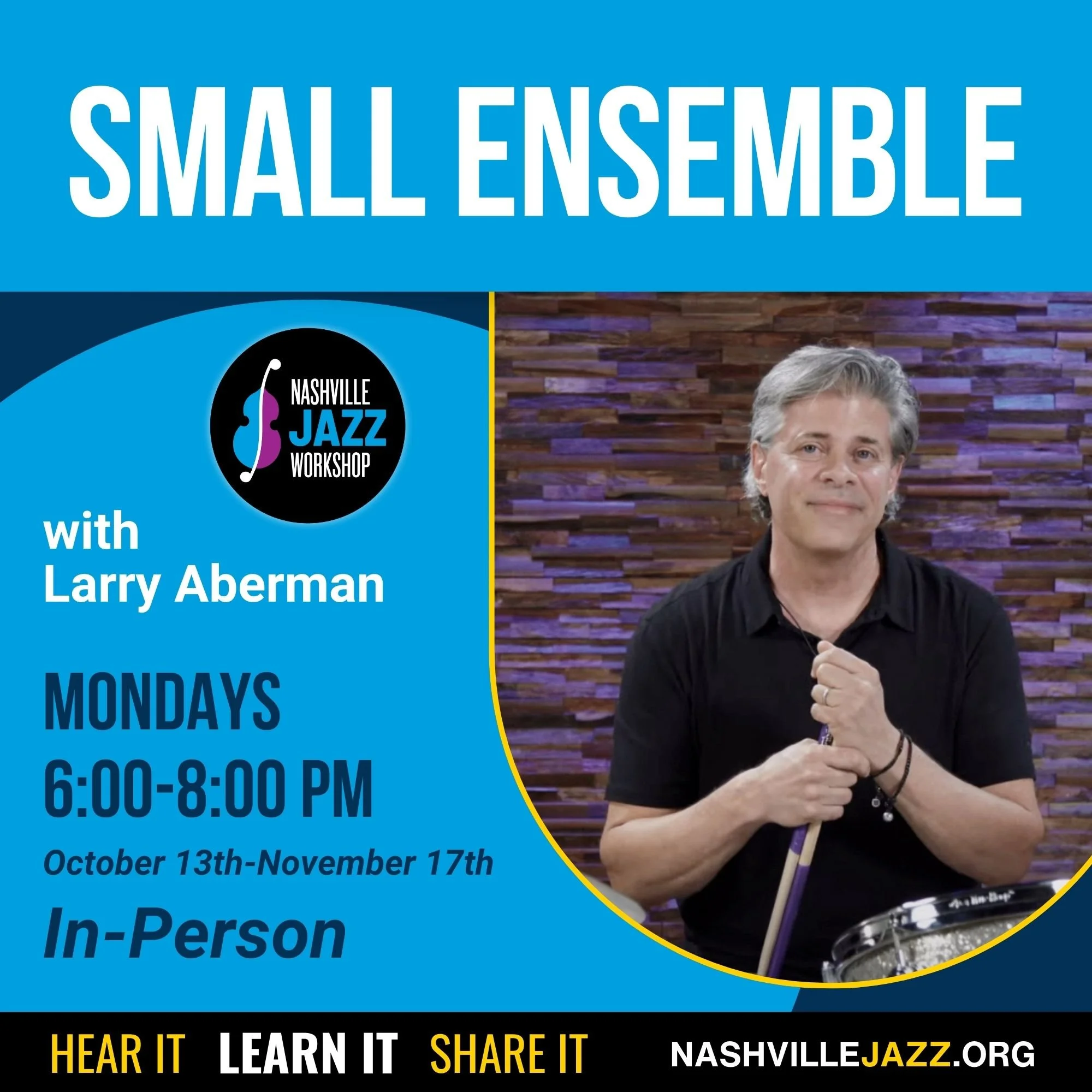 Back to All Events SOLD OUT - Small Ensemble with Larry Aberman - 10/13-11/17 Monday, October 13, 2025 6:00 PM Monday, November 17, 2025 8:00 PM Google Calendar ICS MONDAYS, 6-8PMIN-PERSON, 6 WEEKS10/13-11/17$360This intermediate to advanced ensemble is open to all instrumentalists. Students will cover more advanced concepts of literature, including intros, endings, styles, tempos and comping.